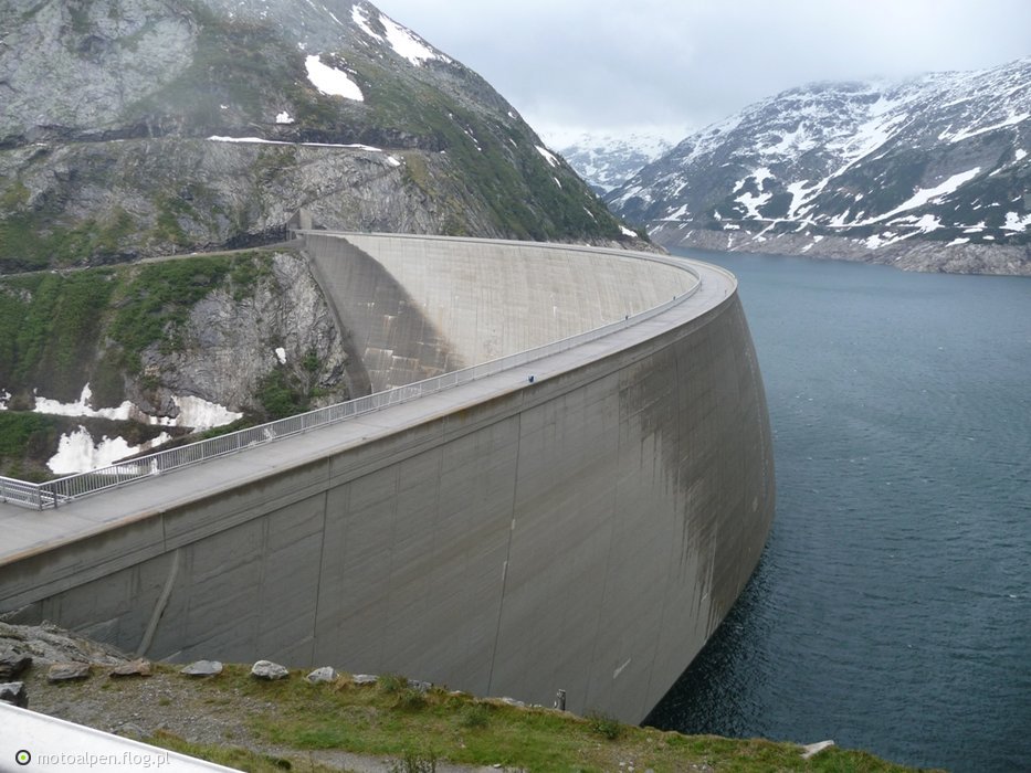 Na zdjęciu widać tamę - orientacyjna wysokość 1933m npm. Aby się do niej dostać, musieliśmy pokonać Malta Hochalmstrasse - 14 kilometrów drogi miejscami tak wąskiej, że był na niej ruch wahadłowy i trzeba było czekać ładnych kilka minut. Dla pocieszenia, był widoczny zegar, na którym przebiegało odliczanie. Zaczęło się do 22 (!) minut, ale szybko spadło o 10. Gdyby nie to, chyba byśmy umarli z nudów. Z ciekawostek - po drodze był tunel w kształcie korkociągu oraz kilka mini-wodospadów odprowadających wodę spływającą z gór wprost na drogę. Szczęśliwie różnicy nam to nie robiło, bo akurat wtedy padał deszcz...