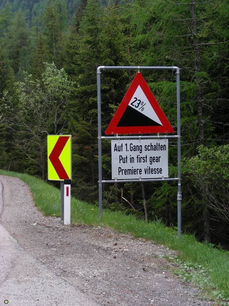 A to na drodze prowadzącej do Nockalm Strasse. Powinni dodać, że nie dotyczy motocykli ;) wystarczyła dwójka, ale można było mieć wrażenie, że motor zaraz się wywróci do przodu przez kierownicę ;) Szczęsliwie tak stromy zjazd był tylko przez chwilę.